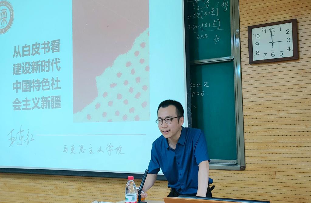 “传承红色基因,铸牢中华民族共同体意识”党史学习教育系列讲座第二讲在雁塔校区五号教学楼5301教室开讲。我校马克思主义学院王东红副教授作了题为“从白皮书看建设新时代中国特色社会主义新疆”的党史学习教育辅导报告。三公