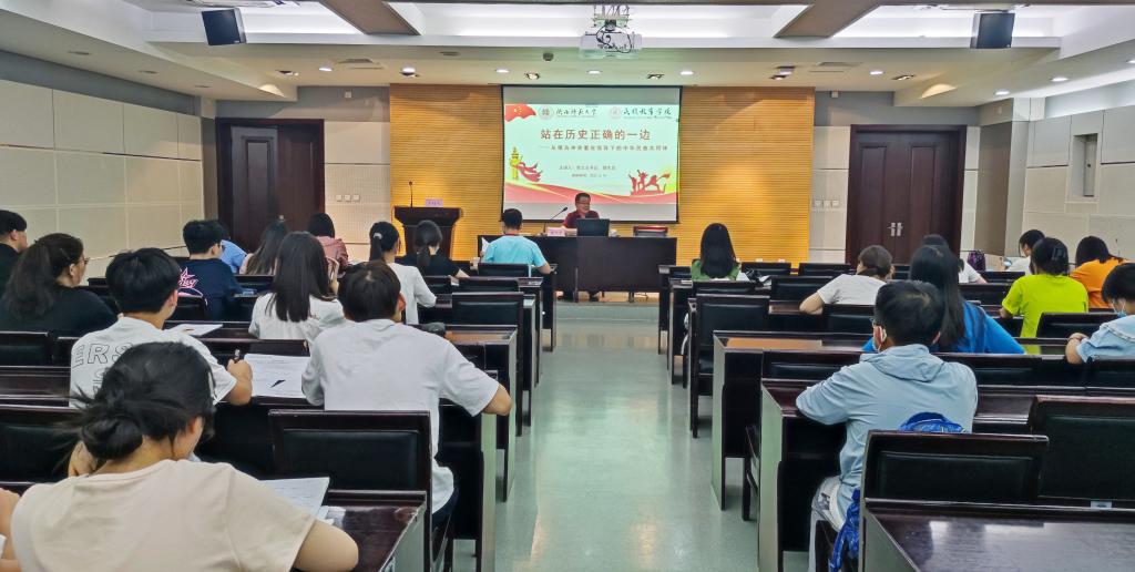 党总支书记郑生忠作题为“站在历史正确的一边——从俄乌冲突看党领导下的中华民族共同体”的专题学习辅导报告。学院全体学生参加了讲座,讲座由学院团总支书记热依木·努尔麦麦提主持。