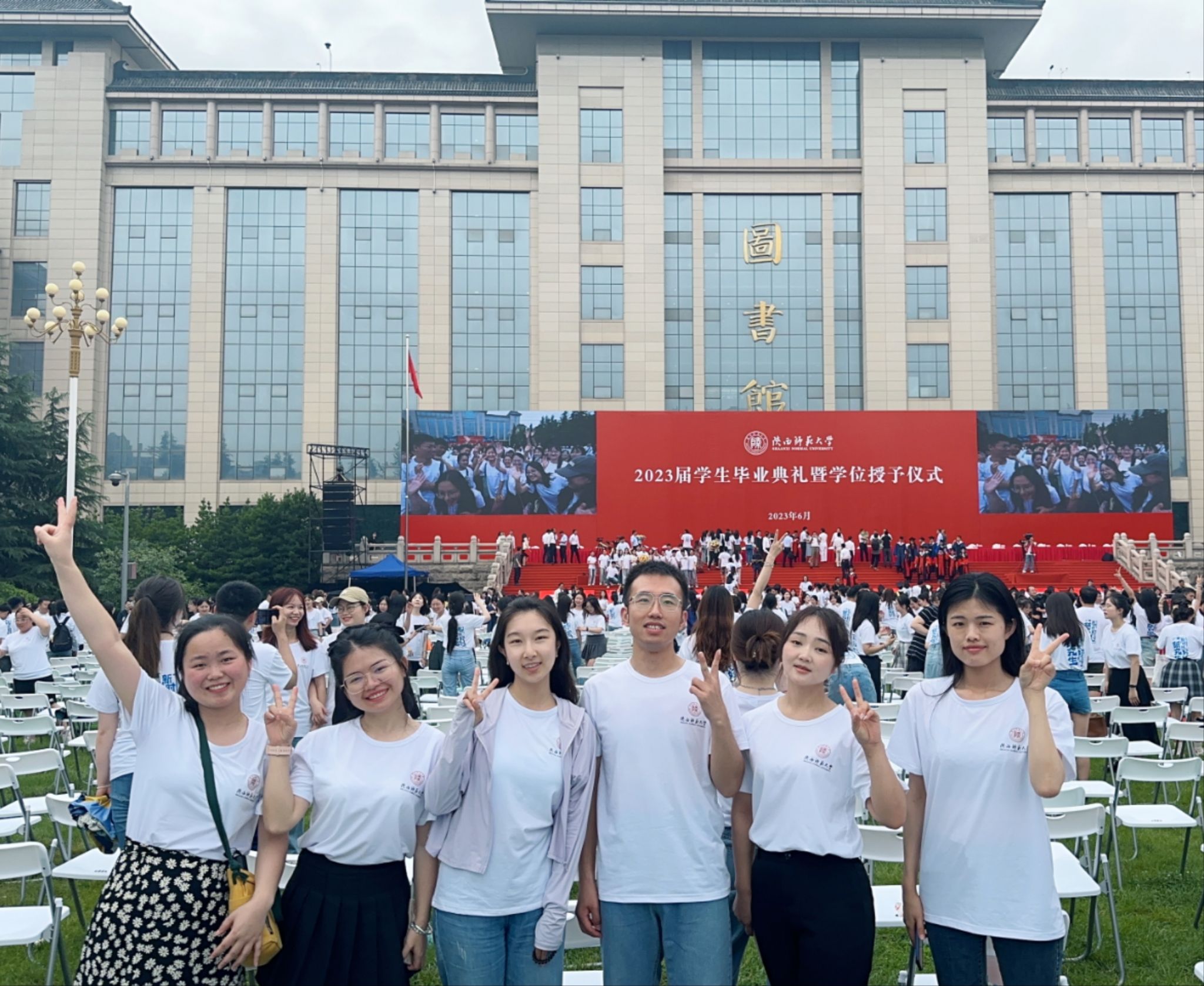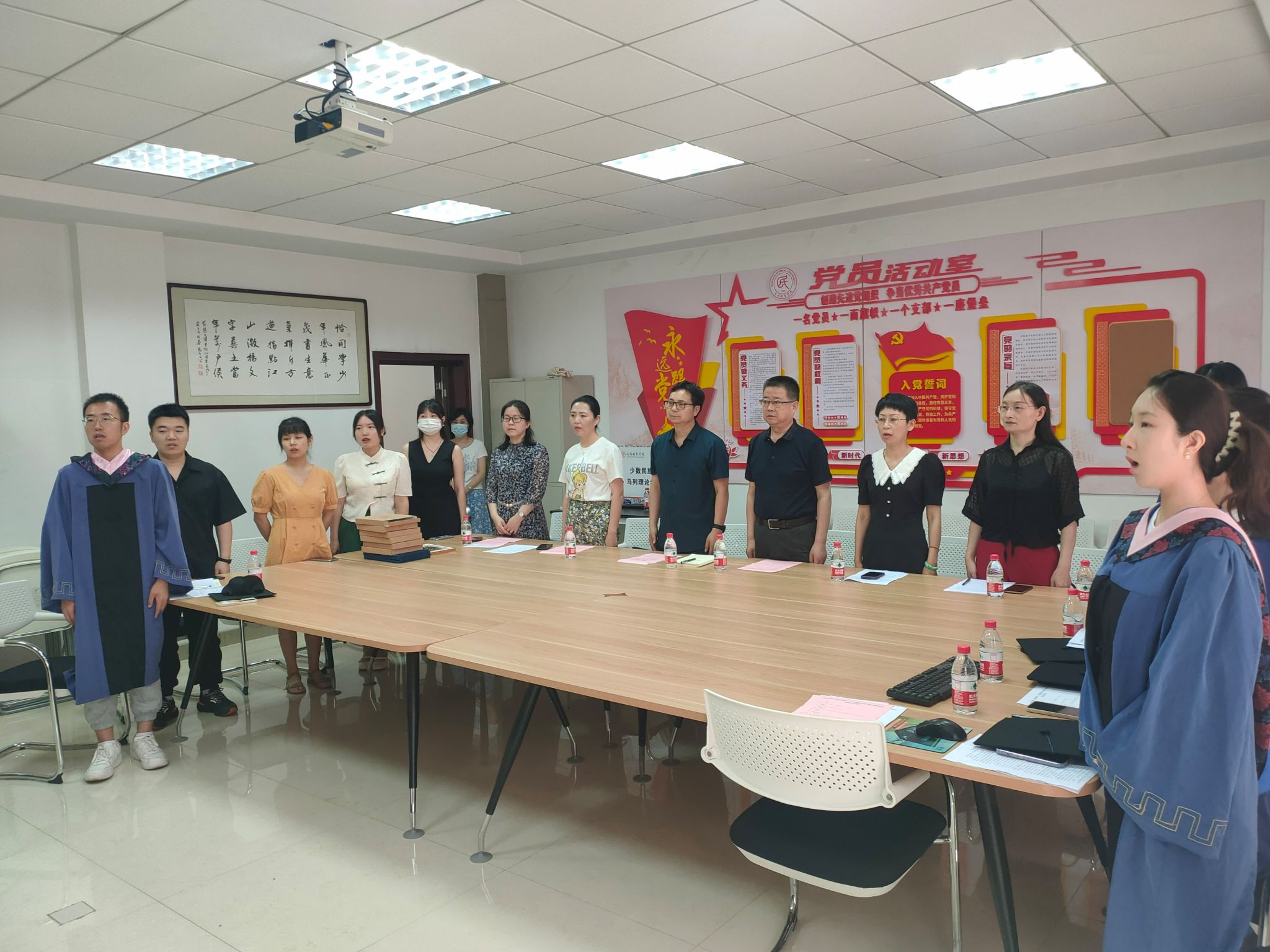 龙宝新教授为毕业生们逐一正冠拨穗、颁发硕士学位证书,并合影。