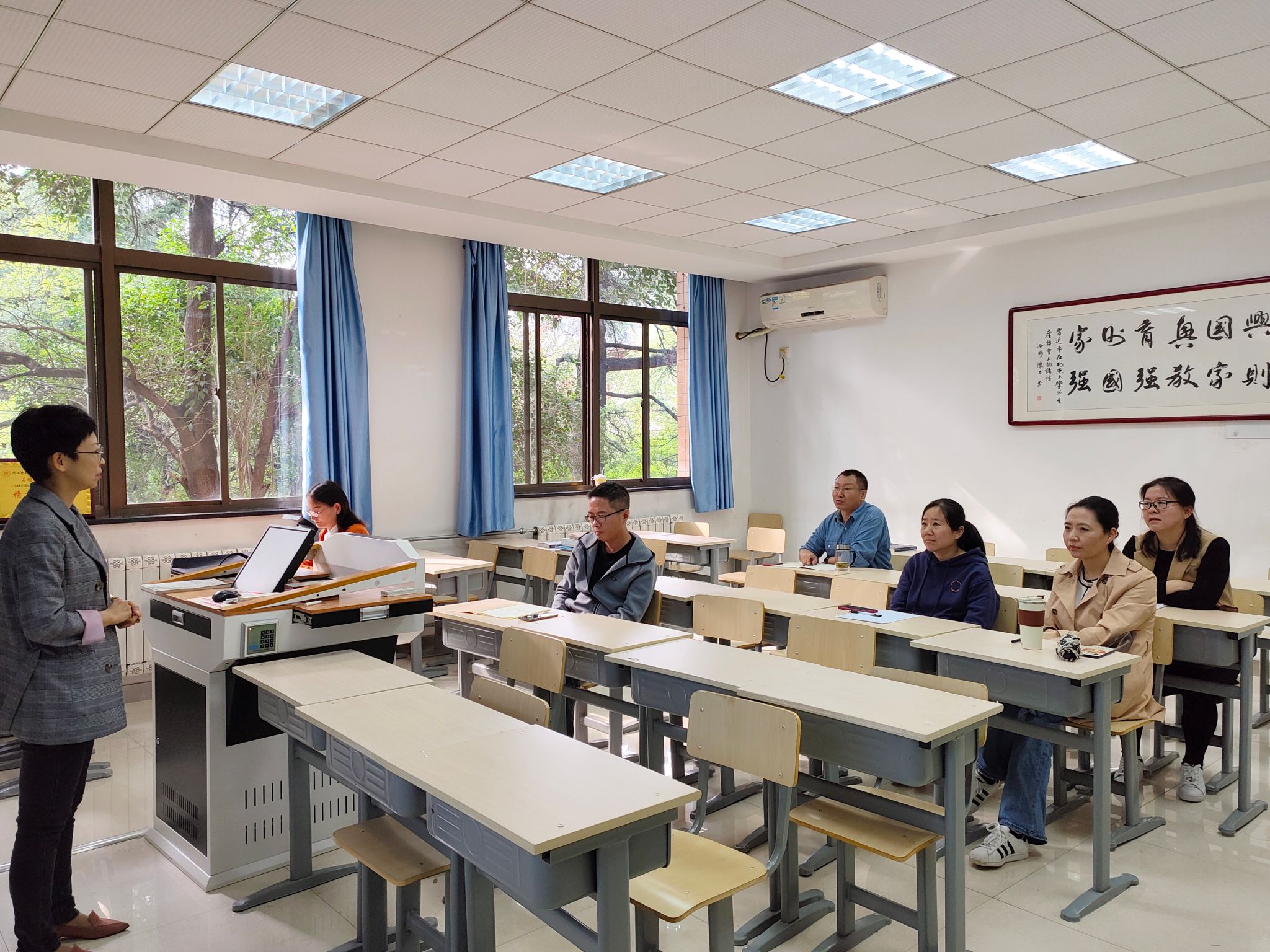 在雁塔校区六附楼214室举行了教师教学示范课观摩学习交流活动,此次活动由成珊娜副教授主持,学院全体教师共同参与。