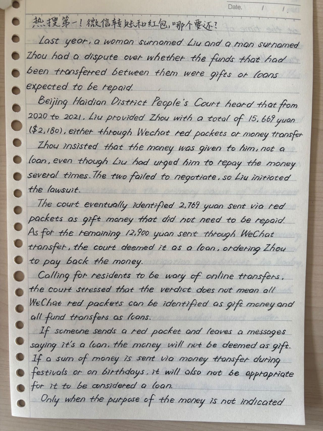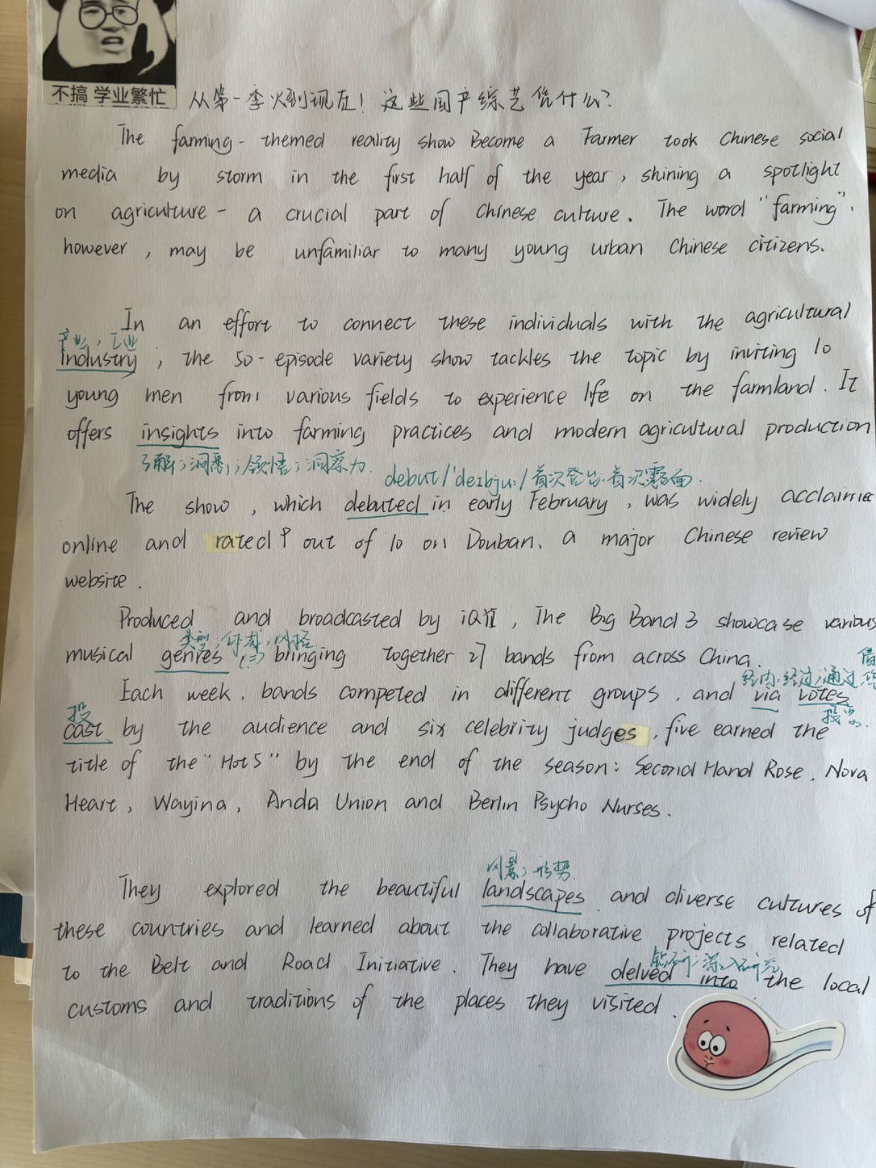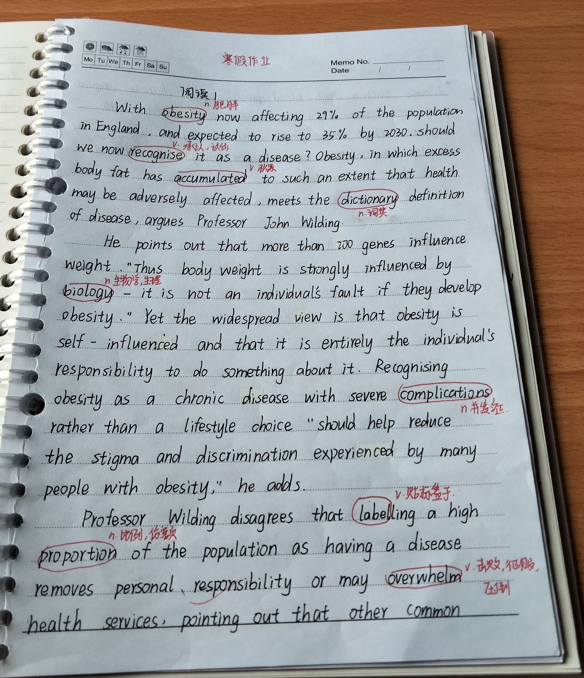 学院为了丰富同学们的寒假生活,特安排语文、数学、英语三门课的寒假作业,各科任课老师根据同学们完成情况以班为单位评选出一等奖1名,二等奖2名,三等奖3名,后附获奖名单及一等奖笔记。