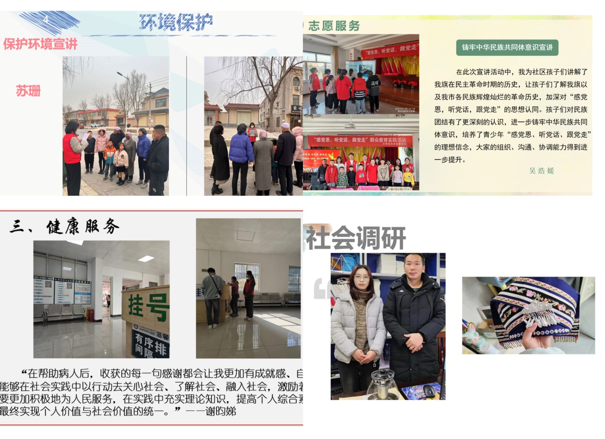今年寒假,学院积极探索创新寒假社会实践活动内容和方式,采用寒假“3+X”实践模式,即“3”包括读书笔记、主题征文、报告撰写的三个必选;“X”涵盖红色足迹、志愿服务、国家通用语言文字推广、文化表演、健康服务、环境保护、强身健体、社会调研、创新活动等9个自选项目。鼓励全员参与个人社会实践和小组团队实践。最终共有36个实践小组(实践团队)参与寒假社会实践,覆盖了新疆、甘肃、宁夏、广西、贵州、云南等14个省市自治区。学院学子们在团队中互助,在实践中历练,在社会中学习,生动演绎了“在实践中求真知,在探索中逐成长”的精神内涵。他们主动追寻红色基因、投身社会调研、志愿服务、感受科技魅力,弘扬传统文化,助力乡村振兴等多个方面,以饱满的热情和切实的行动,为地方基础教育和服务建设注入活力,取得了一定的成效,他们将青春的力量深深根植于家乡热土,彰显了新时代青年的社会责任感和历史担当,充分体现了民教学子的卓越风采与无私奉献的精神风貌。