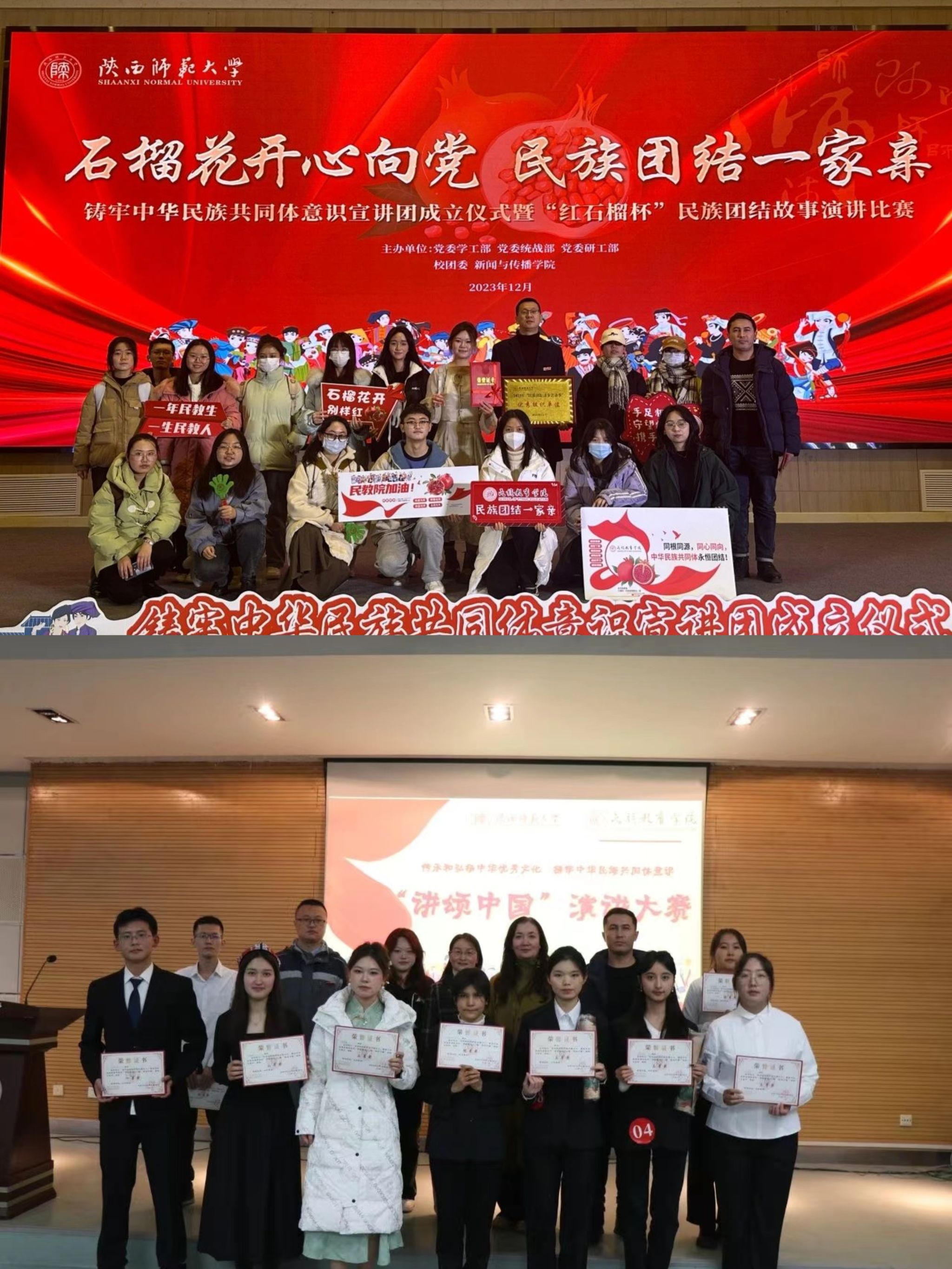 学院立足自身特色,开展以“石榴花开心向党、民族团结一家亲”为主题的“红石榴杯”民族团结进步故事演讲比赛,以及“传承和弘扬中华优秀文化,铸牢中华民族共同体意识”为主题的“讲颂中国”演讲比赛选拔赛。通过演讲比赛,鼓励青年学子挖掘和传承中华优秀传统文化、弘扬民族团结精神,增强民族自豪感和文化自信的同时,锻炼了学生的语言组织能力和口头表达能力,有效增强了同学们的归属感和心理认同。
