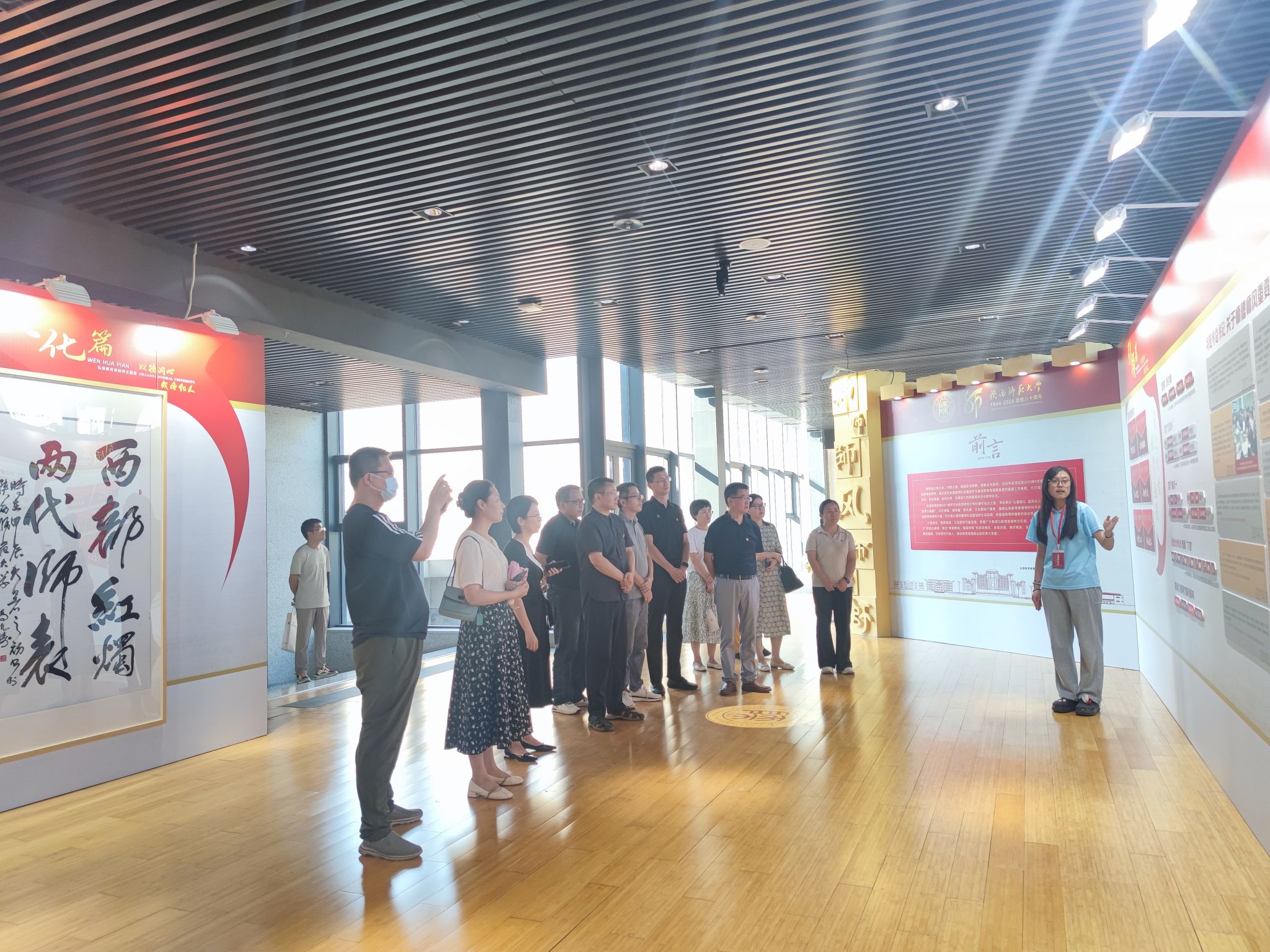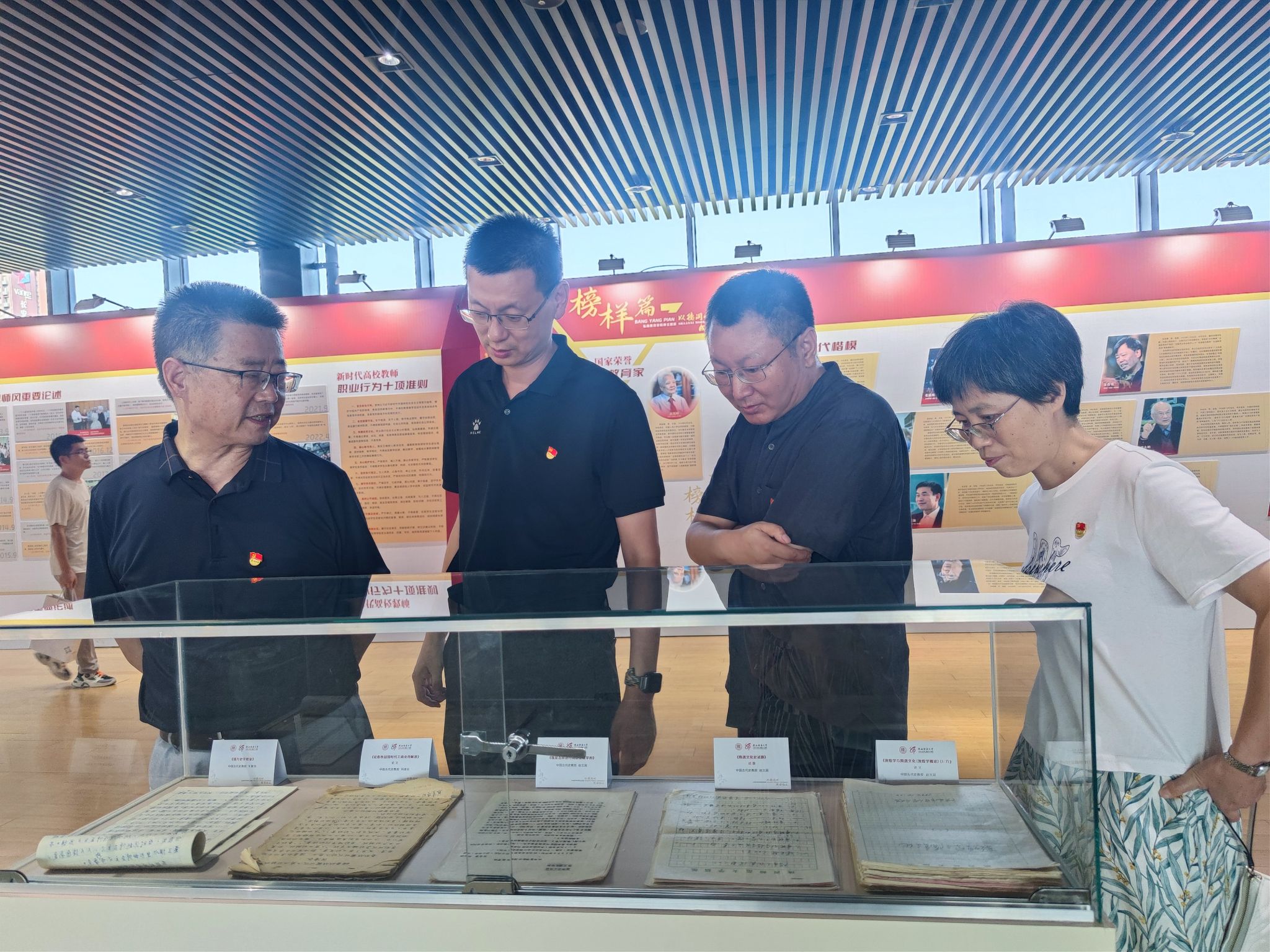 本次展览共分为引领篇、榜样篇、巡礼篇和文化篇四大篇章。老师们在讲解员的带领下,认真学习习近平总书记关于师德师风的重要论述,深刻领悟教育家精神的时代内涵,从3位人民教育家、10位教育系统时代楷模、9位学校国际荣誉获奖教师和3位“西部红烛两代师表奖” 获得者的身上汲取榜样力量。展览还展示了全校24个教学单位在教师思想政治工作和师德师风建设方面取得的显著成效。在文化篇章中,一幅幅书法名作,一份份实物手稿,无不彰显着他们炽热的师者情怀。