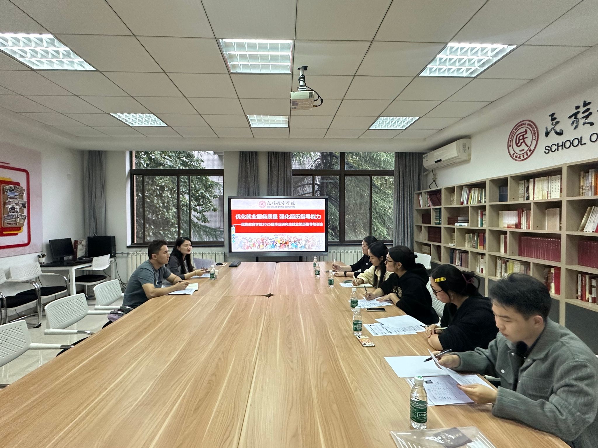 邀请实习僧求职讲师、企业招聘咨询师郑园园为学院2025届毕业研究生进行简历制作相关指导与培训。会议由学院研究生辅导员热依木·努尔麦麦提主持。