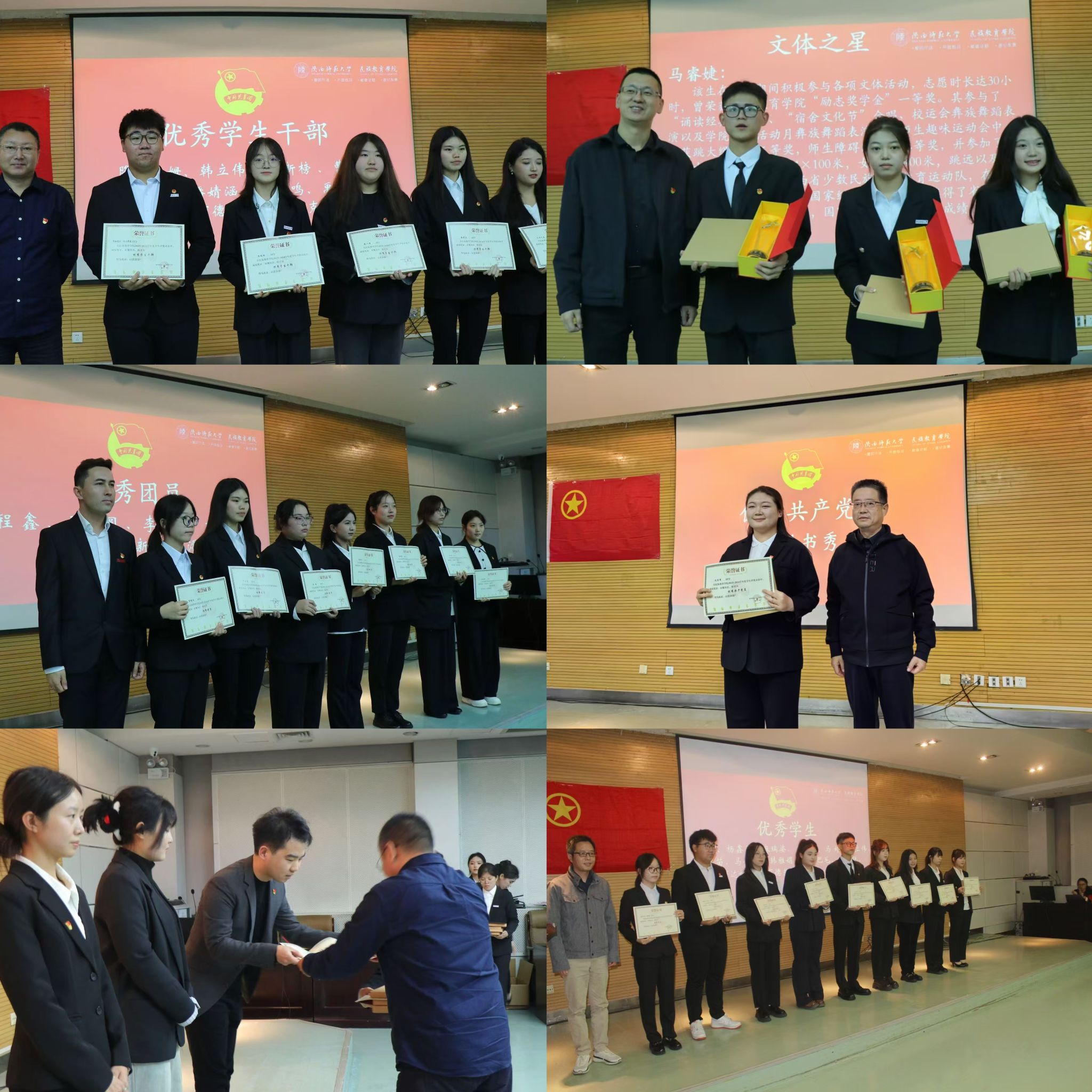2023-2024学年度学生优秀个人表彰大会在雁塔校区崇鎏楼一层学思堂举行。学院党总支书记郑生忠,党总支副书记高冬,学院教师代表刘丁、唐涛,团委书记热依木·努尔麦麦提,以及兼职辅导员刘江珊等出席大会,学院全体学生参加此次表彰大会,大会由2024级预科生曹泽勋、康珠主持。