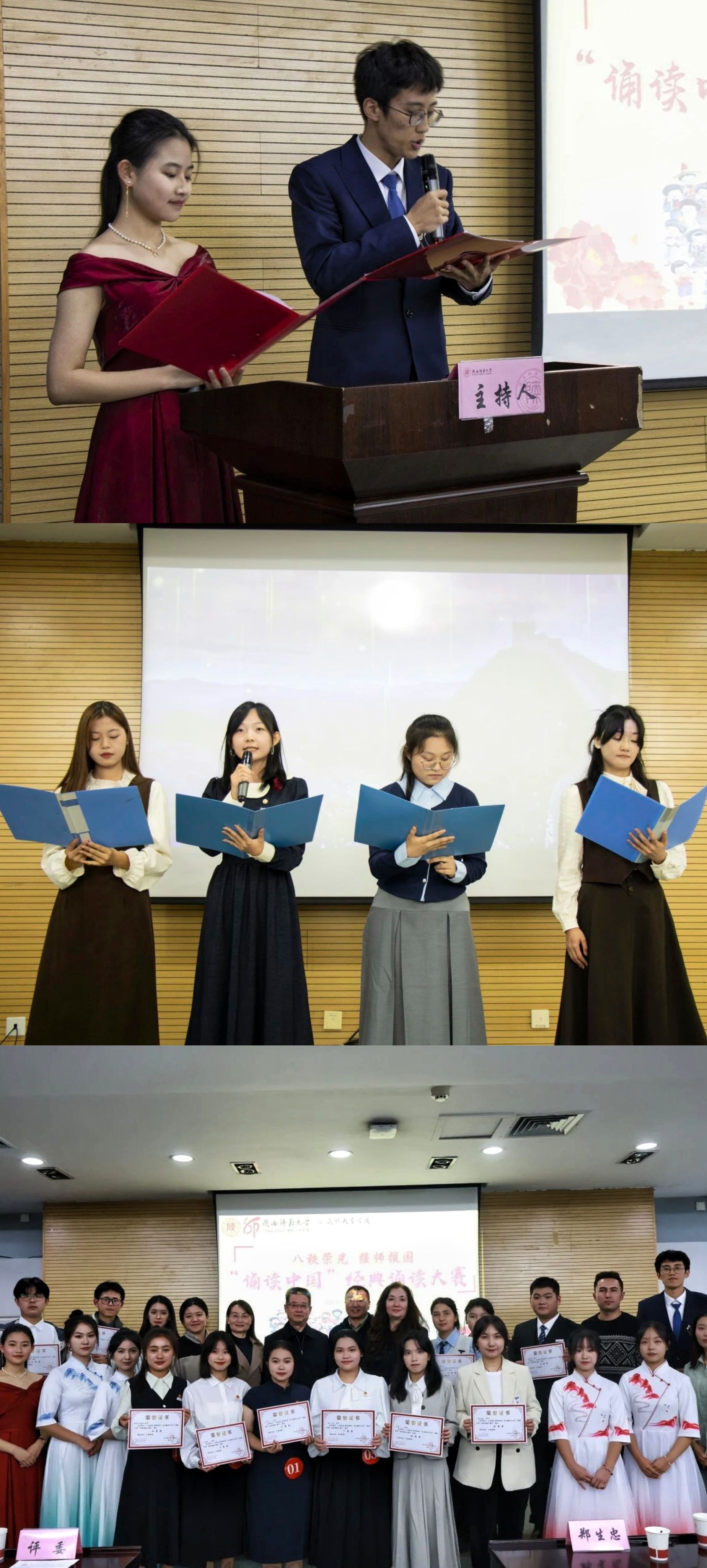 比赛在主持人富有感染力的开幕词中拉开帷幕。选手们依次登台,用诗歌展现中华民族五千年奋斗的波澜壮阔,借散文道出教育工作者对事业的赤诚之心。他们饱含深情,将经典作品演绎得淋漓尽致。紧接着,学院四位预科生代表进行示范朗读,用真挚的语言为三公