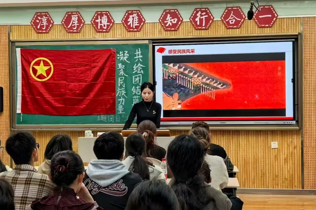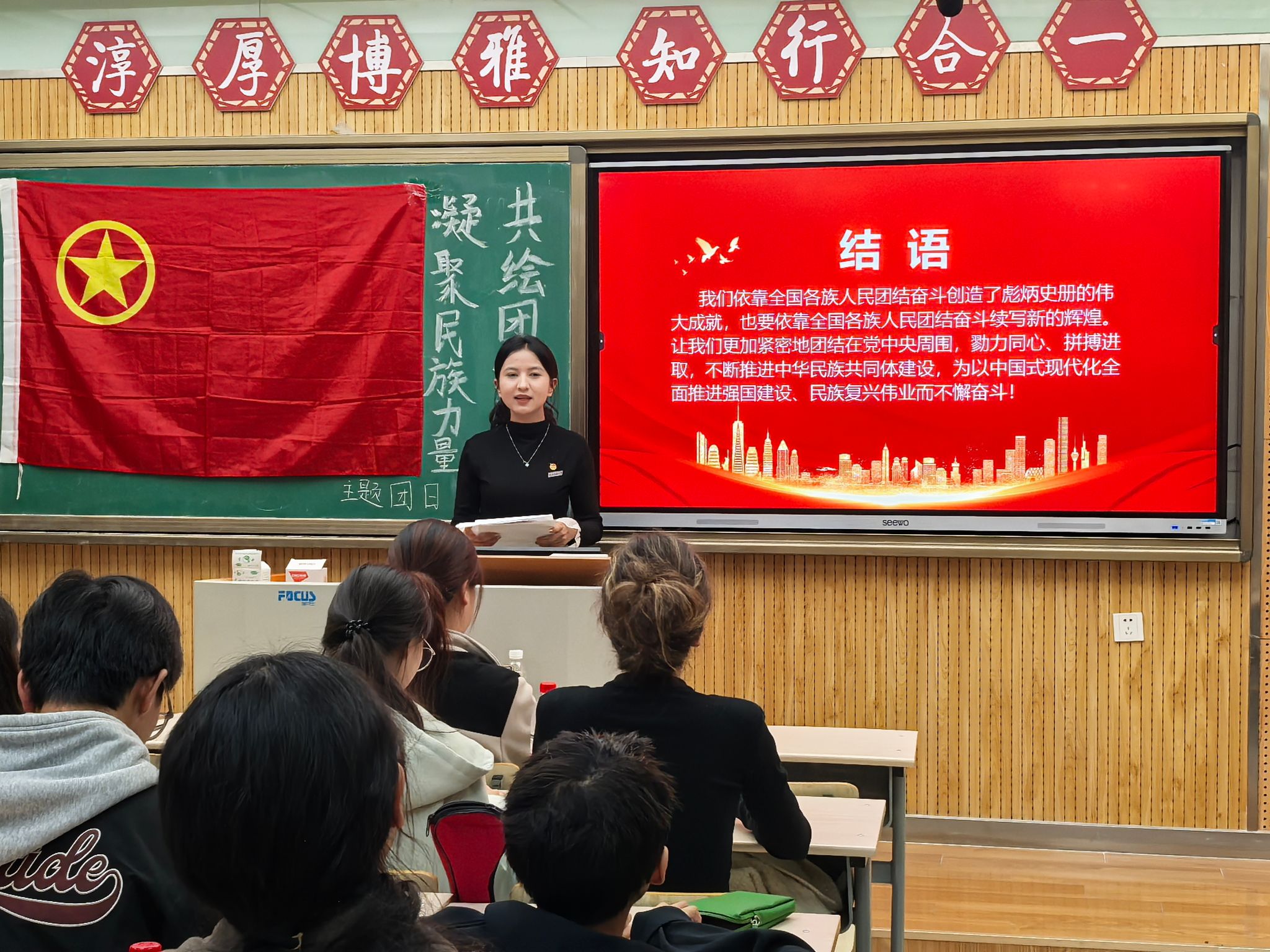 活动最后,热依木对此次主题团日活动做了总结,他强调民族团结是中华民族的生命线,是实现共同繁荣发展的基础,只有各民族同胞紧密团结,才能形成强大的凝聚力,推动国家的不断发展和进步。希望同学们通过丰富多彩的活动形式,进一步增强民族团结意识,促进各民族同学之间交往交流交融,实现知识的共享、文化的交融,共同为实现中华民族伟大复兴的中国梦贡献青春力量。