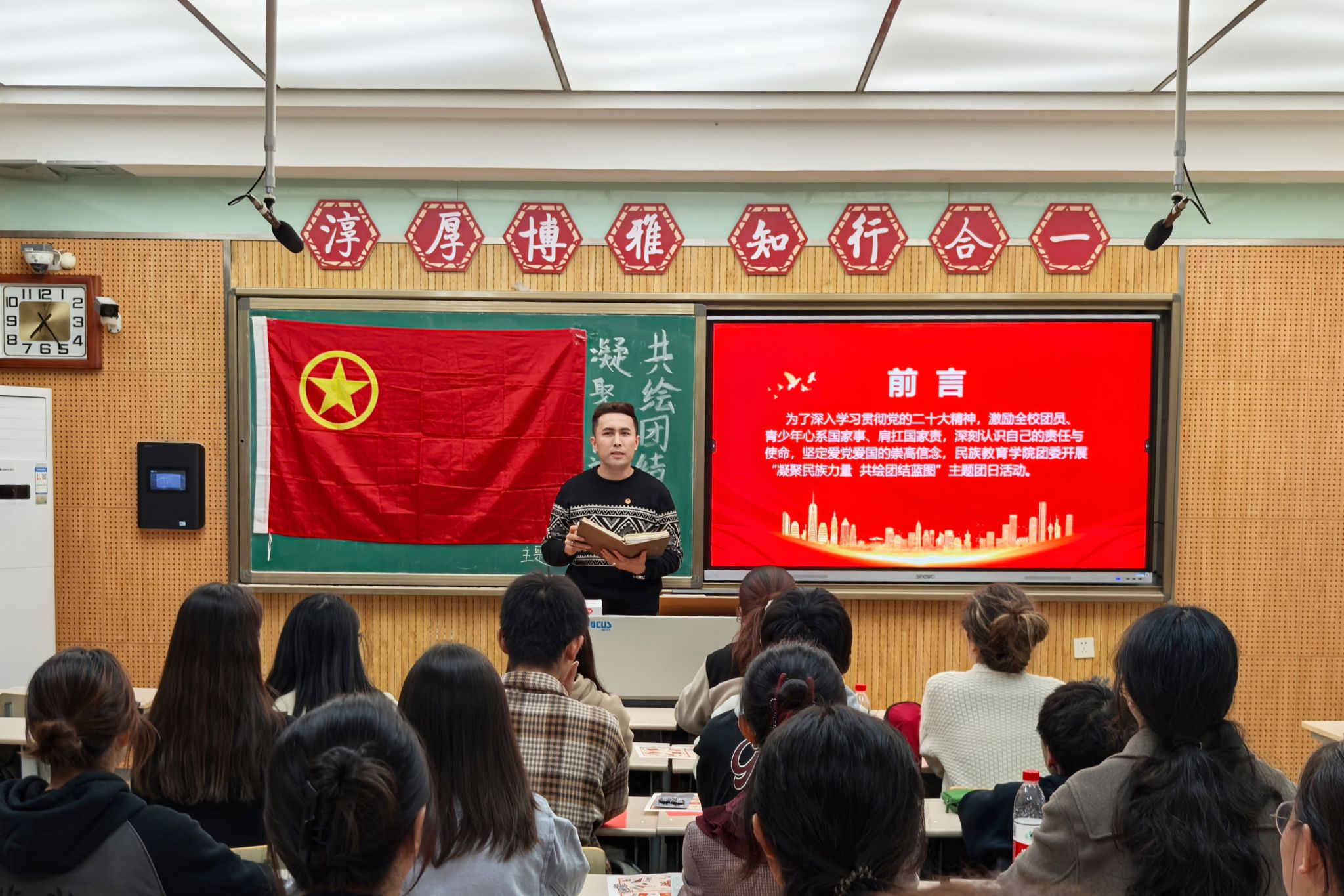 预科生团支部在雁塔校区八号教学楼8303教室举办了以“凝聚民族力量,共绘团结蓝图”为主题的联合主题团日活动,学院团委书记热依木·努尔麦麦提、兼职辅导员刘江珊以及各预科班团员代表参加了此次活动。