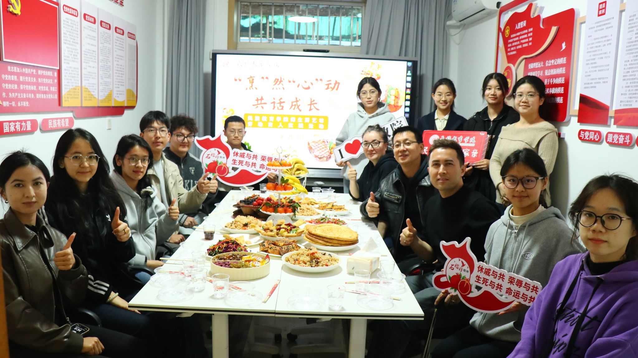 在满是美味佳肴的餐桌旁,师生们欢声笑语,畅所欲言,其间,大家围坐一起吃饭、聊天、做游戏、唱歌,其乐融融。席间既有职业规划的专业探讨,也有成长经历的真诚分享;既有五湖四海的风土展示,也有即兴歌舞的文化交融。交流中,高冬以亲身经历启发学生成长,各族师生在轻松互动中实现思想碰撞与文化互鉴。