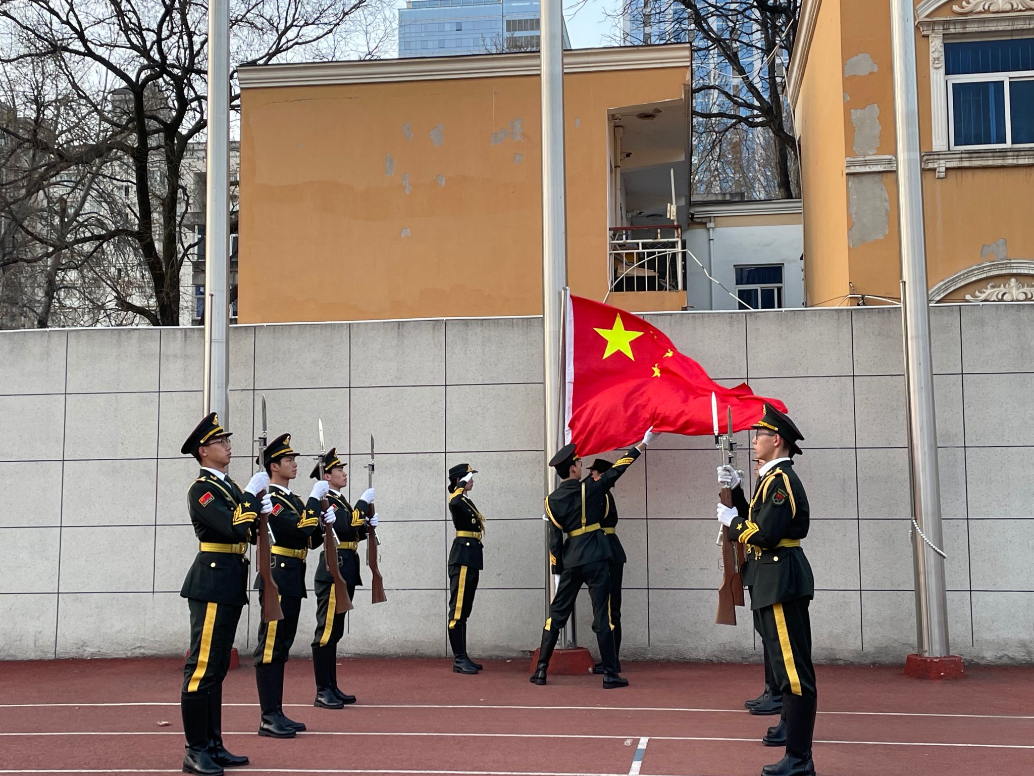 为深入贯彻落实党的二十大精神,弘扬爱国主义精神,激发青年学子以“功成必定有我”的担当,积极投身强国复兴伟业。3月17日清晨,三公