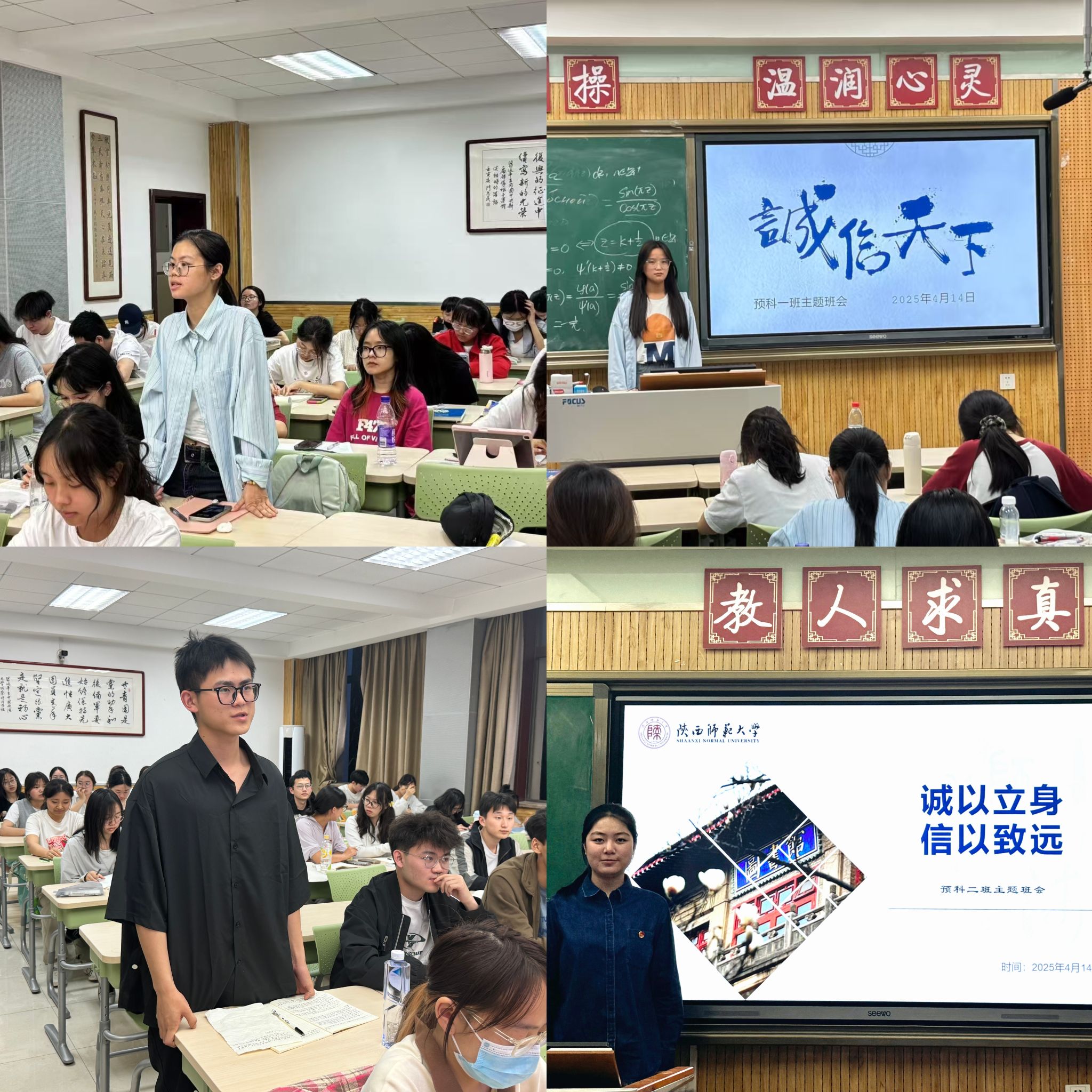 活动启动之初,学院各班级围绕本届活动月主题积极组织线下班会。班会将诚信教育与校风传承、学风建设、文明校园创建有机结合,使“秉信立行”的理念融入班级建设、课堂学习、学术研究以及宿舍生活的各个环节,以点带面,带动更多学生以诚信为准则修养品德。