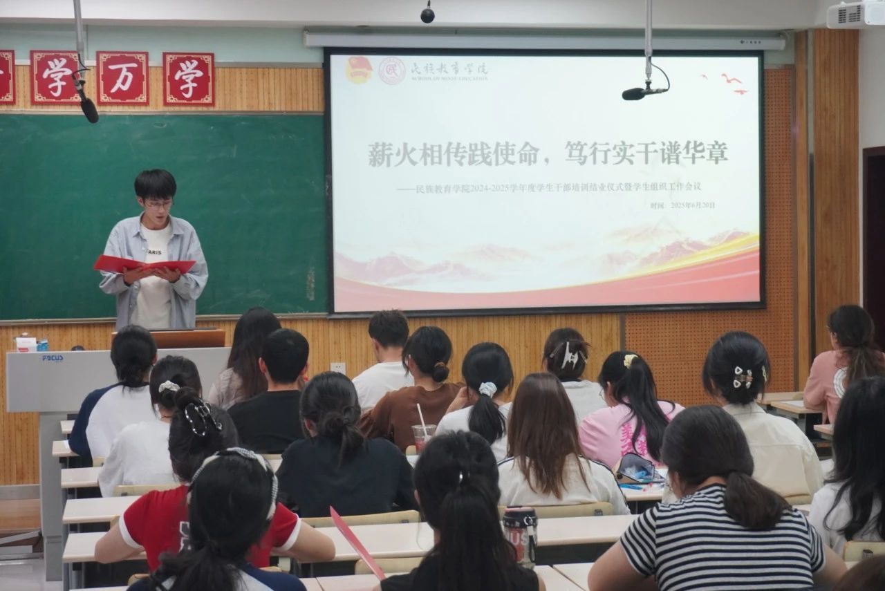 精心组织开展2024-2025学年度学生干部培训。此次培训以“铸牢中华民族共同体意识”为主线,通过六大板块系统化培养,引领60余名学生干部在理论学习中筑牢信仰之基,在实践锻炼中锤炼过硬本领,为建设高素质学生干部队伍奠定坚实基础。前期,以学院党总支副书记高冬牵头的培训领导小组对于培训体系、课程方案、内容设置进行反复打磨,精心呈现具有时代特色、符合民教学子的学生干部培训。