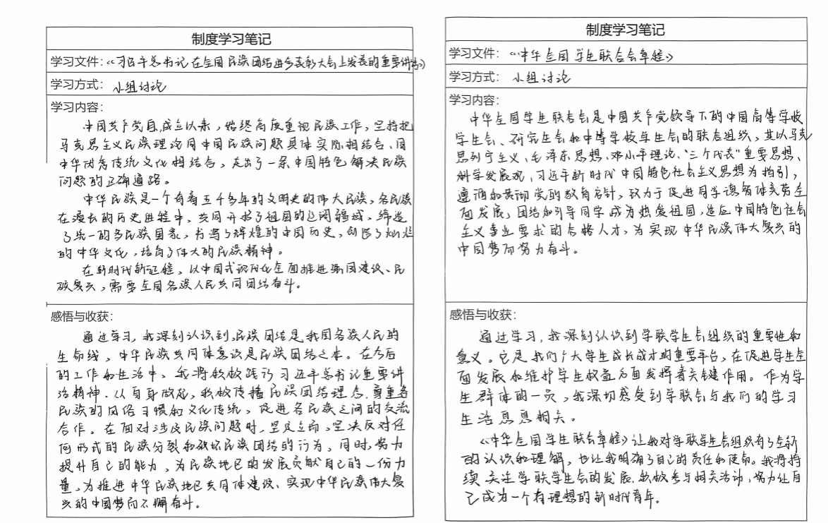培训期间,参训学员以“自主学习+小组研讨”模式深入研读《习近平总书记在全国教育大会上的重要讲话》、《新时代爱国主义教育实施纲要》等8份学习文件,围绕“铸牢中华民族共同体意识”、“教育家精神践行”等主题展开深度研讨,累计形成学习笔记200余篇,在思想碰撞中明确学生干部的责任与担当。
