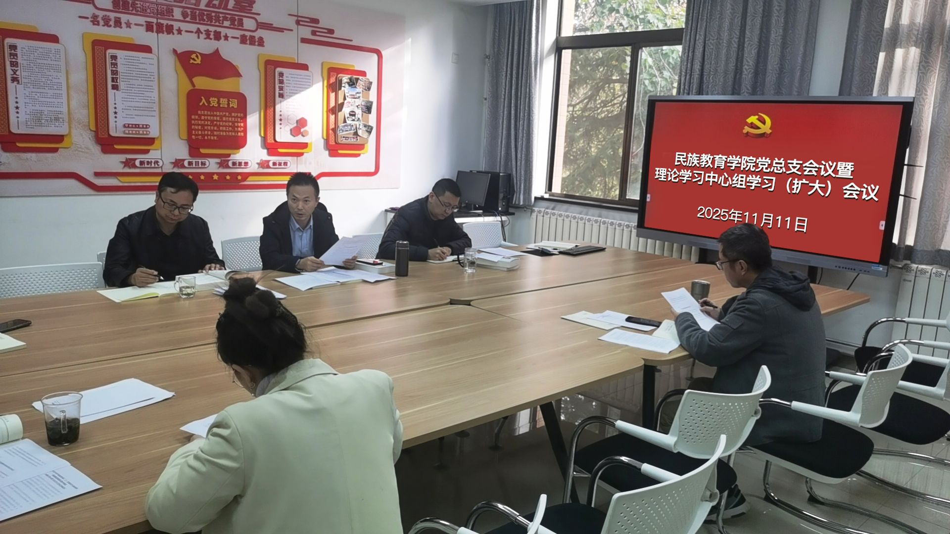 党总支书记闫文浩作了“深刻领悟《习近平谈治国理政》第五卷的真理力量”的学习辅导,阐述了第五卷科学回答中国之问、世界之问、人民之问、时代之问的理论逻辑和实践要求。院长龙宝新围绕“一体推进教育科技人才事业发展”、党总支副书记高冬围绕“坚持和加强党中央集中统一领导,把党的伟大自我革命进行到底”、铸牢中华民族共同体意识教研室党支部书记成珊娜围绕“深刻理解‘两个结合’的重大意义,深刻把握中华文明的突出特性,铸牢中华民族共同体意识”、文理教研室党支部书记刘丁围绕“以中国式现代化全面推进强国建设、民族复兴伟业”作交流发言。